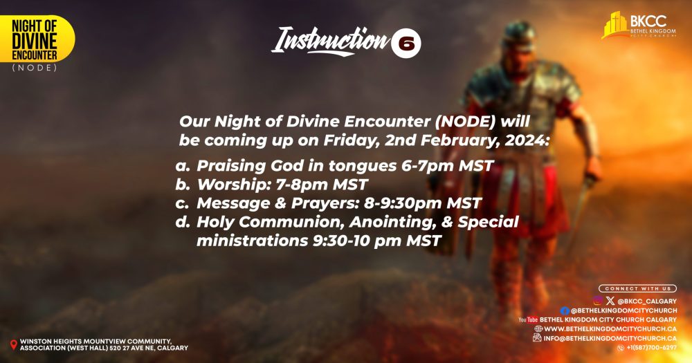 To be a part of the corporate prayers, Early Morning Cry, stream live on our website from 13th January to 2nd February 2024 from 5am MST to 6am MST. Also join us online between 7 pm -10 pm MST on Friday, 2nd February, 2024 for our Night of Divine Encounter through our Church’s Website or through our Facebook, Twitter page or YouTube channel.
